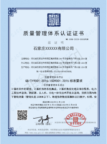 河北誠鑒認證有限公司(簡稱誠鑒認證/CJCC),創立于二零一七年,經國家認證認可監督管理委員會(CNAS)批準(批準號CNCA-R-2018-412),中國合格評定國家認可委員會(CNAS)認可(注冊號:CNAS C303-M)),是從事質量管理體系、環境管理體系、職業健康安全管理體系認證,具有獨立法人資格的第三方認證機構。